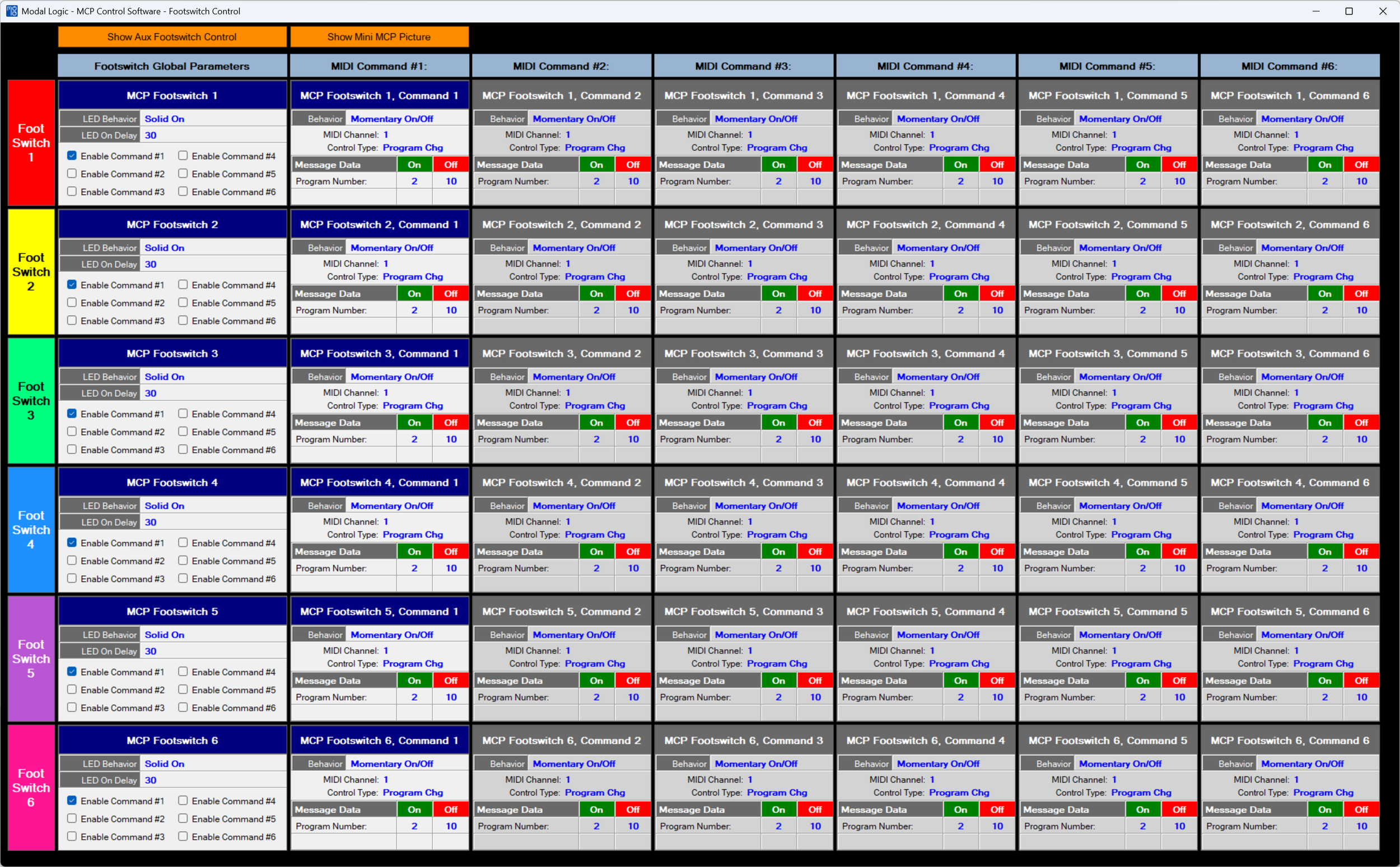 Each Foot Switch is configurable - here is where the details are managed